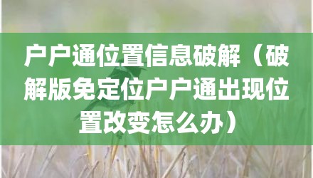 现在给大家讲讲户户通位置信息破解,以及破解版免定位户户通出现位置改变怎么办对应的知识点,如果现在能碰巧解决你面临的问题,我也是很开心,希望对各位朋友有所帮助。