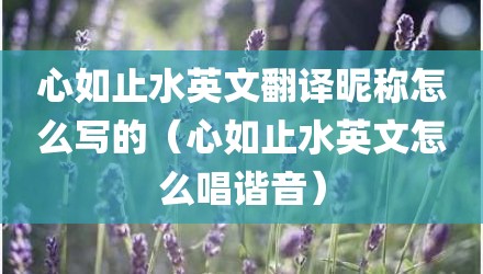 现在给大家讲讲心如止水英文翻译昵称怎么写的,以及心如止水英文怎么唱谐音对应的知识点,如果现在能碰巧解决你面临的问题,我也是很开心,希望对各位朋友有所帮助。