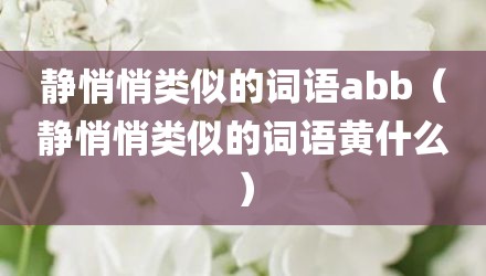 现在给大家讲讲静悄悄类似的词语abb,以及静悄悄类似的词语黄什么对应的知识点,如果现在能碰巧解决你面临的问题,我也是很开心,希望对各位朋友有所帮助。