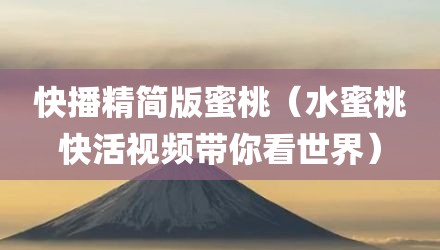 现在给大家讲讲快播精简版蜜桃,以及水蜜桃快活视频带你看世界对应的知识点,如果现在能碰巧解决你面临的问题,我也是很开心,希望对各位朋友有所帮助。