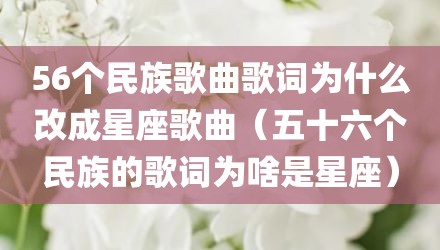现在给大家讲讲56个民族歌曲歌词为什么改成星座歌曲,以及五十六个民族的歌词为啥是星座对应的知识点,如果现在能碰巧解决你面临的问题,我也是很开心,希望对各位朋友有所帮助。