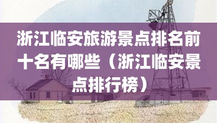 现在给大家讲讲浙江临安旅游景点排名前十名有哪些,以及浙江临安景点排行榜对应的知识点,如果现在能碰巧解决你面临的问题,我也是很开心,希望对各位朋友有所帮助。