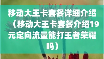 现在给大家讲讲移动大王卡套餐详细介绍,以及移动大王卡套餐介绍19元定向流量能打王者荣耀吗对应的知识点,如果现在能碰巧解决你面临的问题,我也是很开心,希望对各位朋友有所帮助。