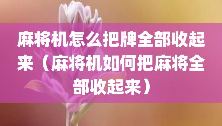 现在给大家讲讲麻将机怎么把牌全部收起来,以及麻将机如何把麻将全部收起来对应的知识点,如果现在能碰巧解决你面临的问题,我也是很开心,希望对各位朋友有所帮助。