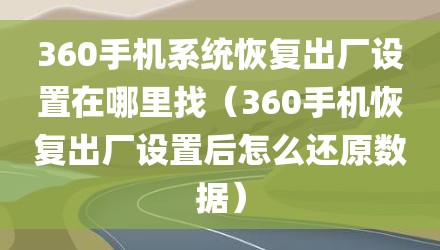 现在给大家讲讲360手机系统恢复出厂设置在哪里找,以及360手机恢复出厂设置后怎么还原数据对应的知识点,如果现在能碰巧解决你面临的问题,我也是很开心,希望对各位朋友有所帮助。