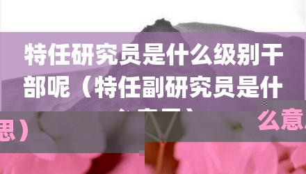 现在给大家讲讲特任研究员是什么级别干部呢,以及特任副研究员是什么意思对应的知识点,如果现在能碰巧解决你面临的问题,我也是很开心,希望对各位朋友有所帮助。
