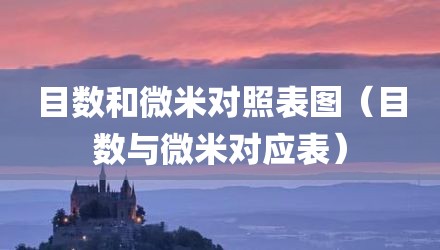 目数与微米对照表,如下:1微米-12500目;3微米-8000目;2微米-6250目;6微米-5000目;5微米-2500目;5微米-2000目;10微米-1250目;15微米-800目;20微米-625目;33微米-425目;37微米-400目;44微米-325目;74微米-200目;149微米-100目;350微米-45目。