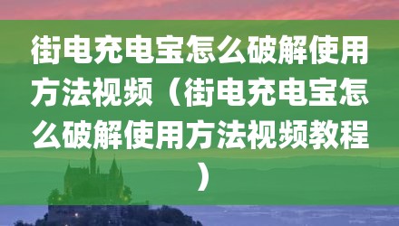 现在给大家讲讲街电充电宝怎么破解使用方法视频,以及街电充电宝怎么破解使用方法视频教程对应的知识点,如果现在能碰巧解决你面临的问题,我也是很开心,希望对各位朋友有所帮助。