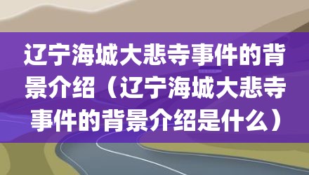 现在给大家讲讲辽宁海城大悲寺事件的背景介绍,以及辽宁海城大悲寺事件的背景介绍是什么对应的知识点,如果现在能碰巧解决你面临的问题,我也是很开心,希望对各位朋友有所帮助。