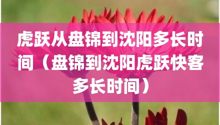 现在给大家讲讲虎跃从盘锦到沈阳多长时间,以及盘锦到沈阳虎跃快客多长时间对应的知识点,如果现在能碰巧解决你面临的问题,我也是很开心,希望对各位朋友有所帮助。