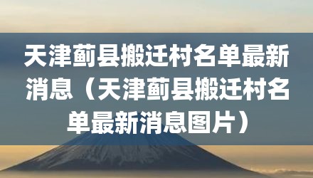 现在给大家讲讲天津蓟县搬迁村名单最新消息,以及天津蓟县搬迁村名单最新消息图片对应的知识点,如果现在能碰巧解决你面临的问题,我也是很开心,希望对各位朋友有所帮助。