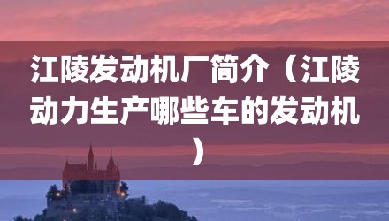 现在给大家讲讲江陵发动机厂简介,以及江陵动力生产哪些车的发动机对应的知识点,如果现在能碰巧解决你面临的问题,我也是很开心,希望对各位朋友有所帮助。