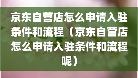 现在给大家讲讲京东自营店怎么申请入驻条件和流程,以及京东自营店怎么申请入驻条件和流程呢对应的知识点,如果现在能碰巧解决你面临的问题,我也是很开心,希望对各位朋友有所帮助。