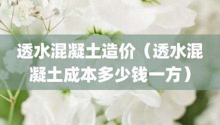 透水混凝土的综合造价约为12-15元左右每公分/平方米,例如5公分的透水混凝土造价约为75元左右/平方米;透水沥青混凝土的综合造价约为60元左右每公分/平方米;例如4公分透水沥青混凝土的造价约为240元/平方米。