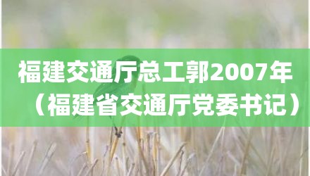 现在给大家讲讲福建交通厅总工郭2007年,以及福建省交通厅党委书记对应的知识点,如果现在能碰巧解决你面临的问题,我也是很开心,希望对各位朋友有所帮助。