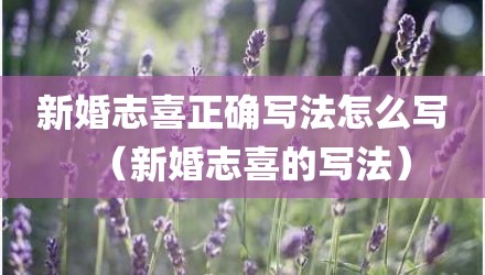 新婚志喜的正确写法:“新婚志囍”或者“新婚禧”,含义都是一样。意思是新婚记下幸福吉祥。一般写在贺礼红包上,向结婚了的人表示祝贺。结婚祝福语8个字 海燕双栖,乾坤定奏。好事连连,好梦圆圆。相亲相爱,宜室宜家。燕侣双俦,闺房和乐。成家之始,成双成业。夫唱妇随,珠联壁合。