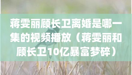 现在给大家讲讲蒋雯丽顾长卫离婚是哪一集的视频播放,以及蒋雯丽和顾长卫10亿暴富梦碎对应的知识点,如果现在能碰巧解决你面临的问题,我也是很开心,希望对各位朋友有所帮助。