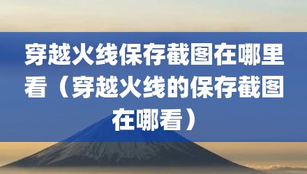 穿越火线手游截图哪里找,穿越火线截图在哪里找