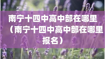 现在给大家讲讲南宁十四中高中部在哪里,以及南宁十四中高中部在哪里报名对应的知识点,如果现在能碰巧解决你面临的问题,我也是很开心,希望对各位朋友有所帮助。