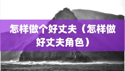 现在给大家讲讲怎样做个好丈夫,以及怎样做好丈夫角色对应的知识点,如果现在能碰巧解决你面临的问题,我也是很开心,希望对各位朋友有所帮助。