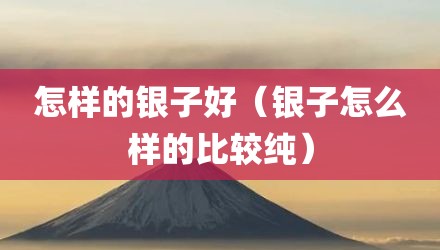 现在给大家讲讲怎样的银子好,以及银子怎么样的比较纯对应的知识点,如果现在能碰巧解决你面临的问题,我也是很开心,希望对各位朋友有所帮助。