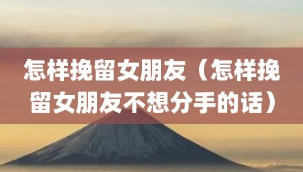 现在给大家讲讲怎样挽留女朋友,以及怎样挽留女朋友不想分手的话对应的知识点,如果现在能碰巧解决你面临的问题,我也是很开心,希望对各位朋友有所帮助。