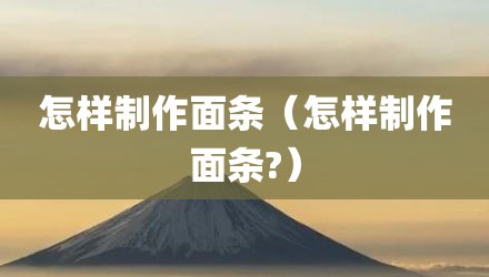 现在给大家讲讲怎样制作面条,以及怎样制作面条?对应的知识点,如果现在能碰巧解决你面临的问题,我也是很开心,希望对各位朋友有所帮助。