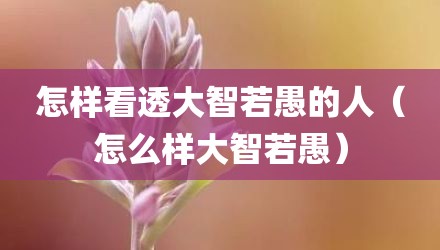 现在给大家讲讲怎样看透大智若愚的人,以及怎么样大智若愚对应的知识点,如果现在能碰巧解决你面临的问题,我也是很开心,希望对各位朋友有所帮助。