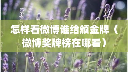 现在给大家讲讲怎样看微博谁给颁金牌,以及微博奖牌榜在哪看对应的知识点,如果现在能碰巧解决你面临的问题,我也是很开心,希望对各位朋友有所帮助。