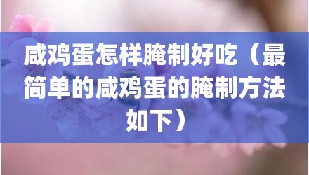 现在给大家讲讲咸鸡蛋怎样腌制好吃,以及最简单的咸鸡蛋的腌制方法如下对应的知识点,如果现在能碰巧解决你面临的问题,我也是很开心,希望对各位朋友有所帮助。