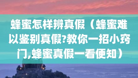 现在给大家讲讲蜂蜜怎样辨真假,以及蜂蜜难以鉴别真假?教你一招小窍门,蜂蜜真假一看便知对应的知识点,如果现在能碰巧解决你面临的问题,我也是很开心,希望对各位朋友有所帮助。