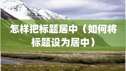现在给大家讲讲怎样把标题居中,以及如何将标题设为居中对应的知识点,如果现在能碰巧解决你面临的问题,我也是很开心,希望对各位朋友有所帮助。