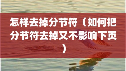 现在给大家讲讲怎样去掉分节符,以及如何把分节符去掉又不影响下页对应的知识点,如果现在能碰巧解决你面临的问题,我也是很开心,希望对各位朋友有所帮助。